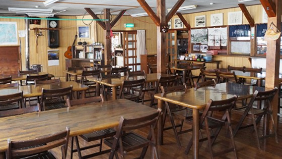 食堂脇の炉端コーナーには、尾瀬の本や図鑑、ゲームなどのご用意がございます。夕食後は食堂を開放しており、ゆったりと食後のひとときを過ごせます。